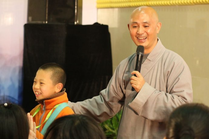 我发现我比较容易和孩子玩在一起,当初行脚的时候,就有很多小孩子喜欢跟着我一起走,到现在我也一直很容易和孩子们在一起。开始我也觉得奇怪,后来我一思考就知道了,因为我跟孩子们在一起玩的时候,我就像孩子一样,讲孩子会讲的话,像孩子一样快乐的玩耍。大家发现,孩子就是喜欢和孩子玩,孩子不喜欢和大人玩,为什么孩子不喜欢和父母玩呢?因为我们的父母跟孩子在一起还是讲大人的话,孩子就不喜欢了。作为父母,如果连自己的孩子都无法带领,还能带领谁啊?我们呀,应该跟孩子一样的玩,跟孩子们一起玩,生出童心,给孩子们讲讲童话故事。我们主动跟他们变成一样,就跟他们成为同一个物种了。