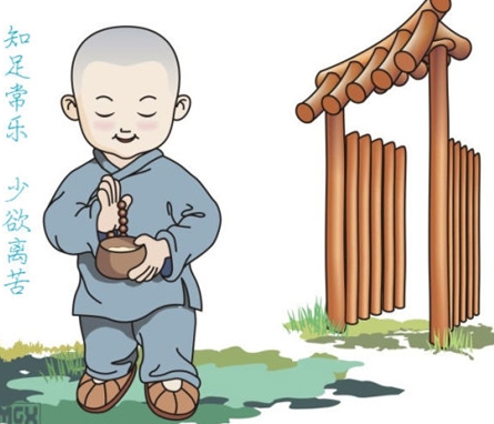 小沙弥赶快回头,看到老和尚严肃的面容,吓了一跳!老和尚将包袱拿给他说:“把包袱背好,跟在我后面走!”小沙弥想:做人真苦!刚才自己还那么开心,才一转眼就变得很难过,人的心念真是不稳定啊!凡夫之心很容易动摇,还是修菩萨行好,起码我可以面对苦难众生,跟很多人结好缘,做一些我做得到的本分事。