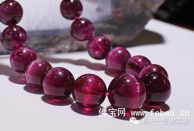 碧玺中自带猫眼效应的就是碧玺猫眼,其中又以红、绿色碧玺居多。碧玺的猫眼效果是因为碧玺内部长着平行的管状包裹体,这种包体达到一定的密度,在垂直着平行包裹体的方向就会在点光源照射下有一条亮线,这样的碧玺原料切磨出来才会有猫眼效果。