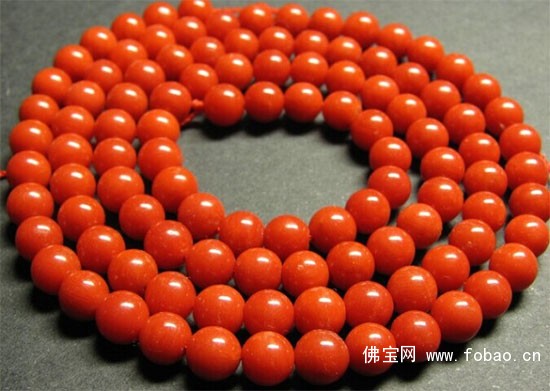 辨别特征:没有自然纹理线;几乎每件珊瑚饰品都极一致,太统一、单调,颜色光泽易褪变。