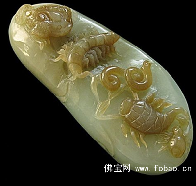 五毒,指五种有剧毒的动物。民间传说中的五毒,分别指青蛇、蜈蚣、蝎子、壁虎和蟾蜍。而玉雕器中的五毒造型一般是指:蝎子、蛇、蜈蚣、蜘蛛、蟾蜍。雕在一起叫“五毒”,中国古人认为毒能克毒,佩戴雕刻剧毒的玉饰能与邪相克、以毒攻毒、百毒不侵,寓意避邪免灾,永保平安。也有单独雕刻,单独雕刻的寓意也有所不同。