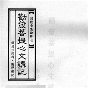 当我在讲这劝发菩提心文时,远来闻法的谢净德居士,立即发起大菩提心来,将我所讲的记为讲记,而且记得极为详细,eM述又极条理分明,文字更是干净利落,没有什么浮词浪语,真正可说是极为难得的!