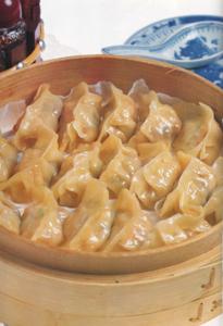 C、炒好的料以水饺皮一一包成水饺状后,放入蒸笼蒸约15分钟即可。