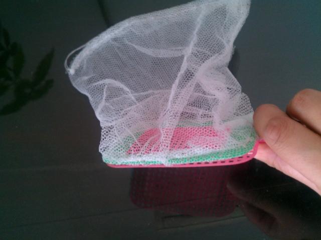 第三步:用家里的不用的旧蚊帐或者纱布,缝一个跟苍蝇拍大小合适的小网