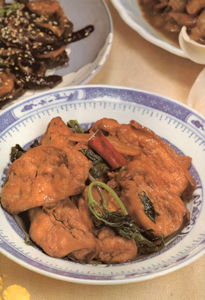 及调味料烧煮至汤汁收乾,最