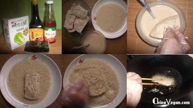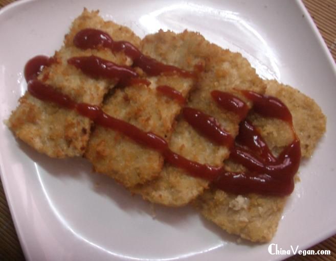 原料:素肉大片、裹炸粉、面包糠