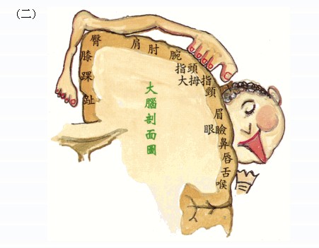 1、如下图,越是末梢细微精密活动,越属高层脑部管辖。各种动物都难以有像人类般的手指活动,(图上可见管手指活动之管辖区,在脑中占特别大的比例),尤其‘小指’和‘心的专注程度’有密切关系。
