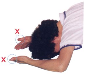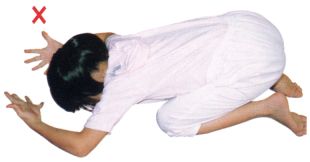 故初学者,若掌不能翻平,只要每拜翻掌时,‘刹那’使力翻一下,就即刻放松、深吸气,勿持续紧张用力。每拜若能‘刹那’拉开一下、又放松,不久就可恢复原来肌肉的弹性和长度,很容易将掌翻平。翻掌虽是个小动作,却和整个上臂之肌肉、血流神经有关,乃至牵涉到脊髓和脑部(锥体径路)之传导,故不宜草率。