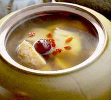 3、倒入盅中,蒸(炖)40分鐘(如用电锅则外锅加一杯水),端出前再加入枸杞即可。