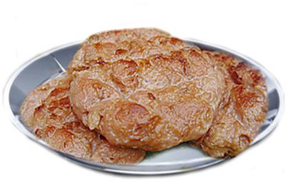 4、用大火煮水,待水滚,将蒸盘放入锅中蒸7分钟即熟。可以直接吃,也可以做成素牛排、素肉大排,或煎至金黄再淋上蕃茄酱或素排酱来食用,或切片炒菜都十分美味。