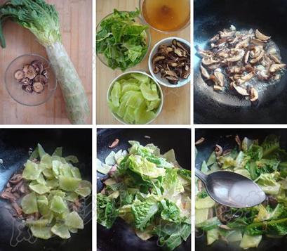材料:莴笋一根,香菇8朵,葱姜末适量,水淀粉适量