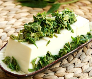 3、豆腐切块,撒上香椿末儿,加盐、香油调味儿即可。