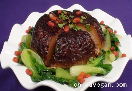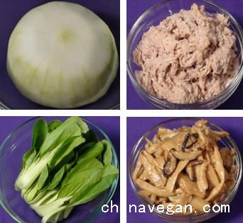 冬瓜帽600公克、素火腿浆300公克、绿色青菜200公克、卤好的笋干300公克