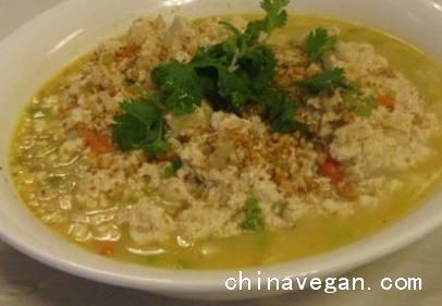 原料:豆腐 胡萝卜 白菜杆 黄瓜 香菇 素炖肉 花生末 姜末