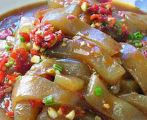 别名:团粉、驼粉、淀粉、粉面使用提示:每餐5~15克 勾芡用的淀粉,又叫做团粉,是由多个葡萄糖分子缩合而成的多糖聚合物。烹调用的淀粉,主要有绿豆淀粉、马铃薯淀粉、麦类淀粉、菱角淀粉、藕淀粉、玉米淀粉等。淀粉不溶于水,在和水加热至60℃时,则糊化成胶体溶液。勾芡就是利用淀粉的这种特性,使蔬菜间接受热,保护食物的营养成分并改善口味,可使流失的营养素随着浓稠的汤汁一起被食用。团粉还含有还原性谷胱甘肽,对维生素C有保护作用。营养分析:由于用芡粉所做的浆、粉、糊、汁、芡的处理,还可起到保护层的作用,既防止营养成分的流失或被破坏,也可避免动物蛋白接触高温焦糊而产生的不利健康的物质。 食疗作用:中医理论认为,勾芡处理有助于“舒脾阳”,清代《养生随笔》中有载。制作指导: 1. 勾芡一般用两种方法。一种是淀粉汁加调味品,俗称“对汁”,多用于火力旺,速度快的熘、爆等方法烹调的菜肴。另一种是单纯的淀粉汁,又叫“湿淀粉”,多用于一般的炒菜。
