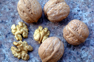 核桃仁中含有锌、锰、铬等人体不可缺少的微量元素。人体在衰老过程中锌、锰含量日渐降低,铬有促进葡萄糖利用、胆固醇代谢和保护心血管的功能。核桃仁的镇咳平喘作用也十分明显,秋冬季节对慢性气管炎和哮喘病患者疗效极佳。可见经常食用核桃,既能健身体,又能抗衰老。有些人经常吃补药,其实每天早晚各吃几枚核桃,实在大有裨益,往往比吃补药还好。食用时需要注意,不要将核桃仁表面的褐色薄皮剥掉,这样会损失一部分营养。