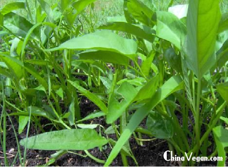 系广州市农家品种。其植株生长健旺,分枝较多。茎粗大,青白色,微有槽纹,节细且较密。叶片长卵形,上端尖长,基部盾形,深绿色。叶脉明显。叶柄长,青白色。适应性强,可旱地或浅水栽培。品质柔软而薄,质量好,产量高,亩产7000千克。