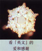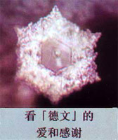 这张是让水「读」了文字「爱和感谢」后拍下的水结晶照片。实验者说,在当时拍摄的许多水结晶照片中,从未见到过如此漂亮的水结晶。看来这世界上没有比「爱和感谢」更美的讯息了。我们如果常常表达「爱和感谢」,是不是能让我们地球上的水、和身体里的水变得如此漂亮动人啊?